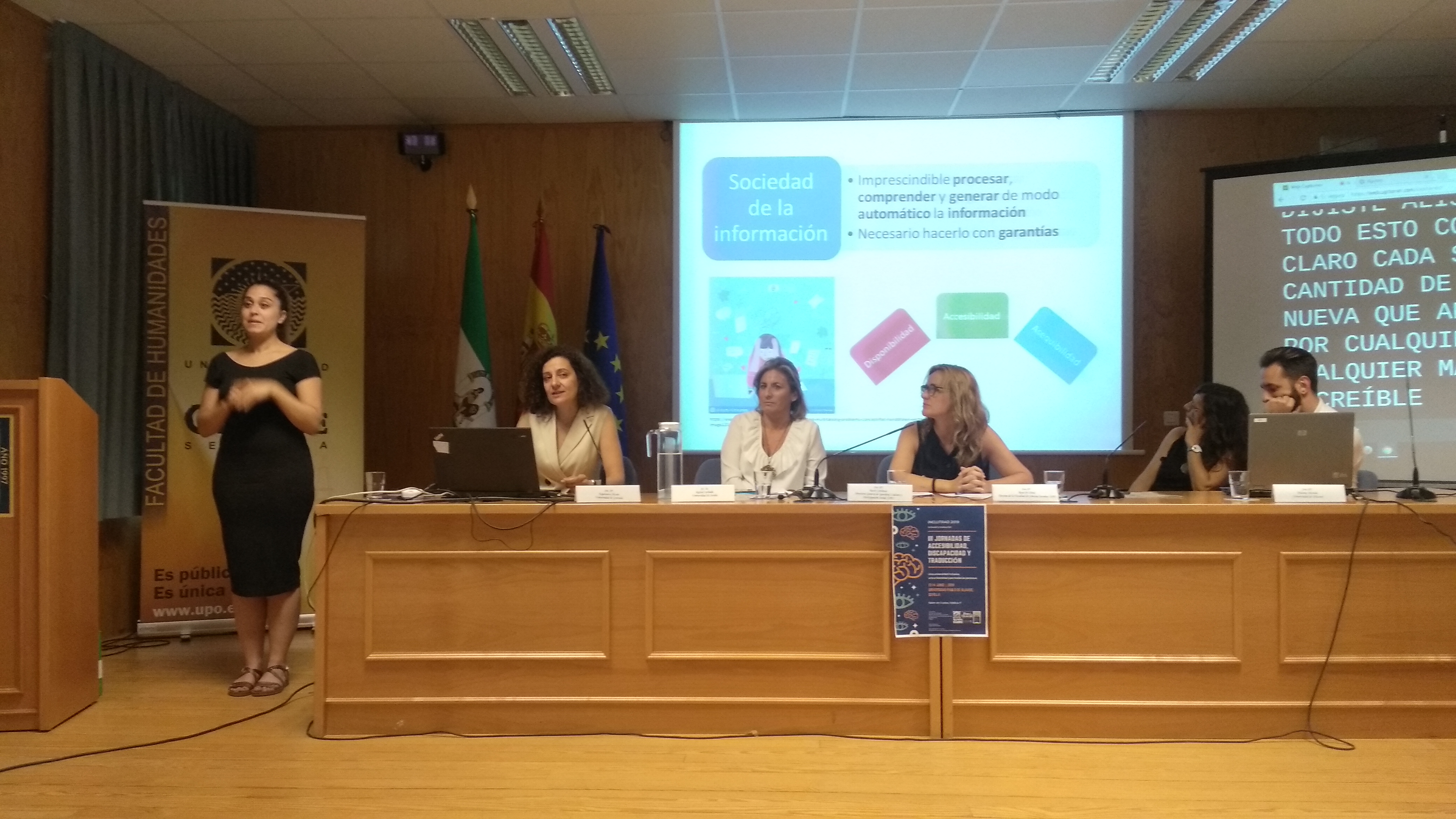 Paloma Moreda, Directora del departamento de lenguajes y sistemas informáticos de la Universidad de Alicante y miembro del proyecto SIIA, acudió a las “III Jornadas de accesibilidad, discapacidad y traducción: INCLUTAD 2019” para dar a conocer el trabajo que se está realizando con nuestro proyecto. Las Jornadas se realizaron en la Universidad Pablo Olavide de Sevilla.